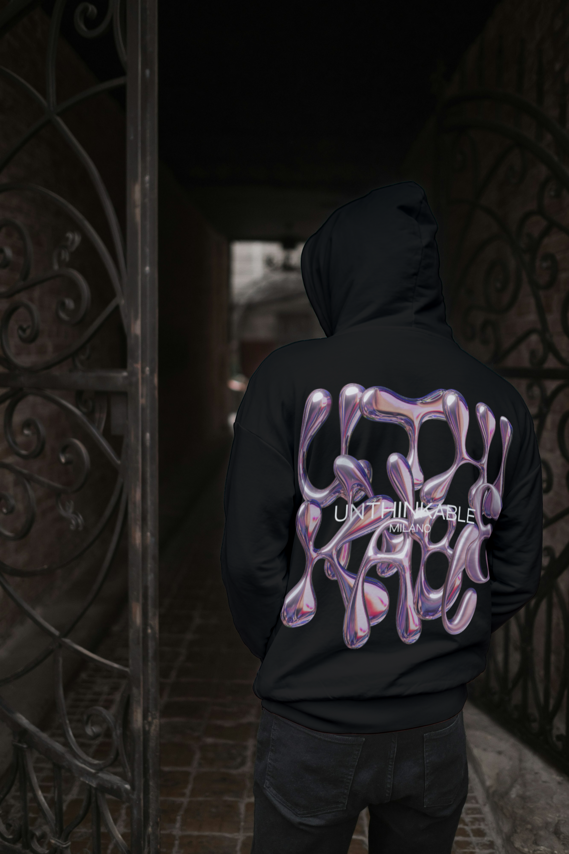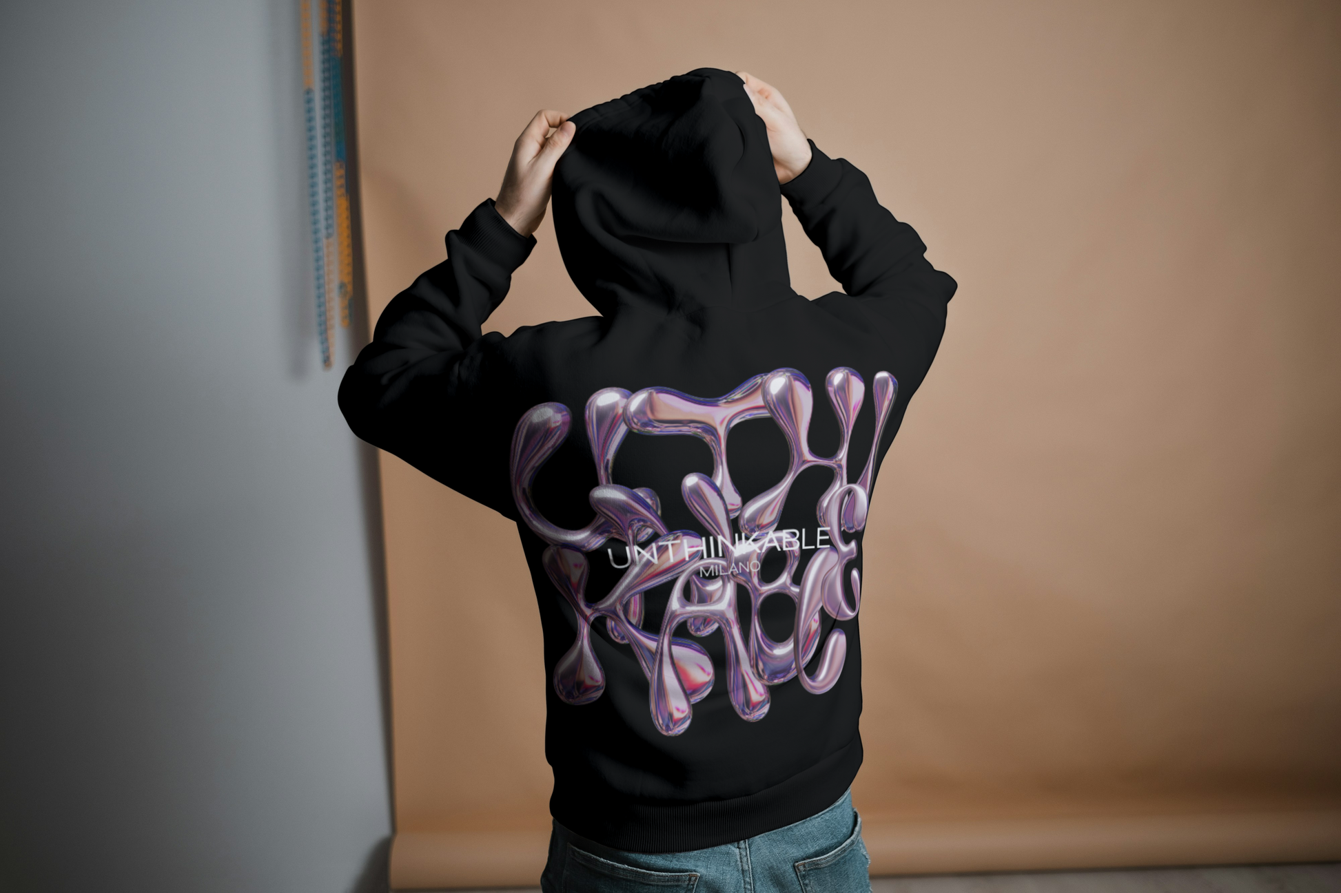 Perfetta per chi vuole unire praticità e tendenza, questa felpa con cappuccio rappresenta al meglio l'estetica urban e contemporanea di Unthinkable Milano.