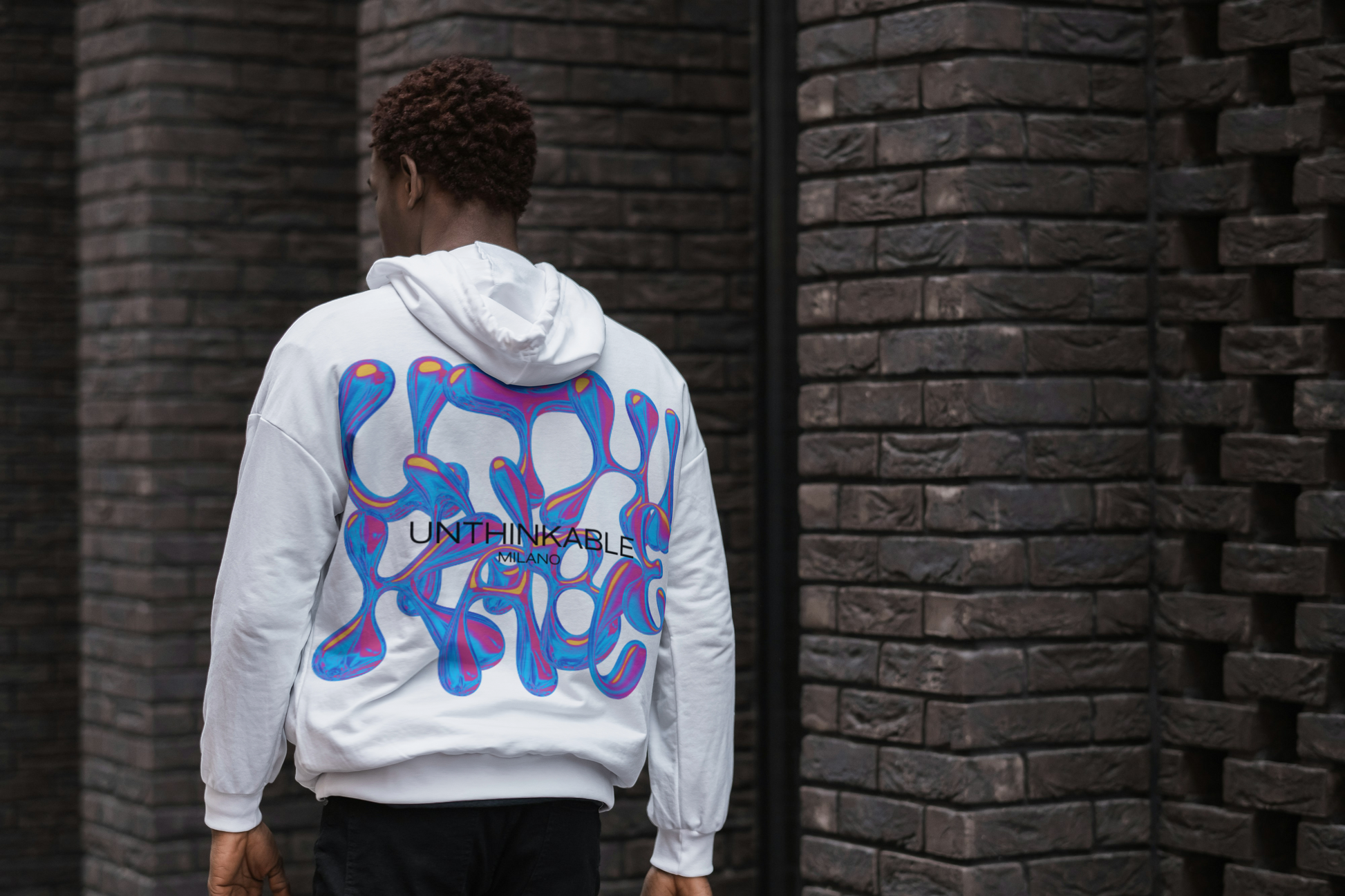 Porta il tuo stile al livello successivo con la felpa con cappuccio in cotone di Unthinkable Milano, disponibile nei colori bianco e nero. Questo capo essenziale si distingue per il logo sul retro con effetto thermo, che cambia colore in base alla temperatura, aggiungendo un tocco innovativo e dinamico al tuo look.