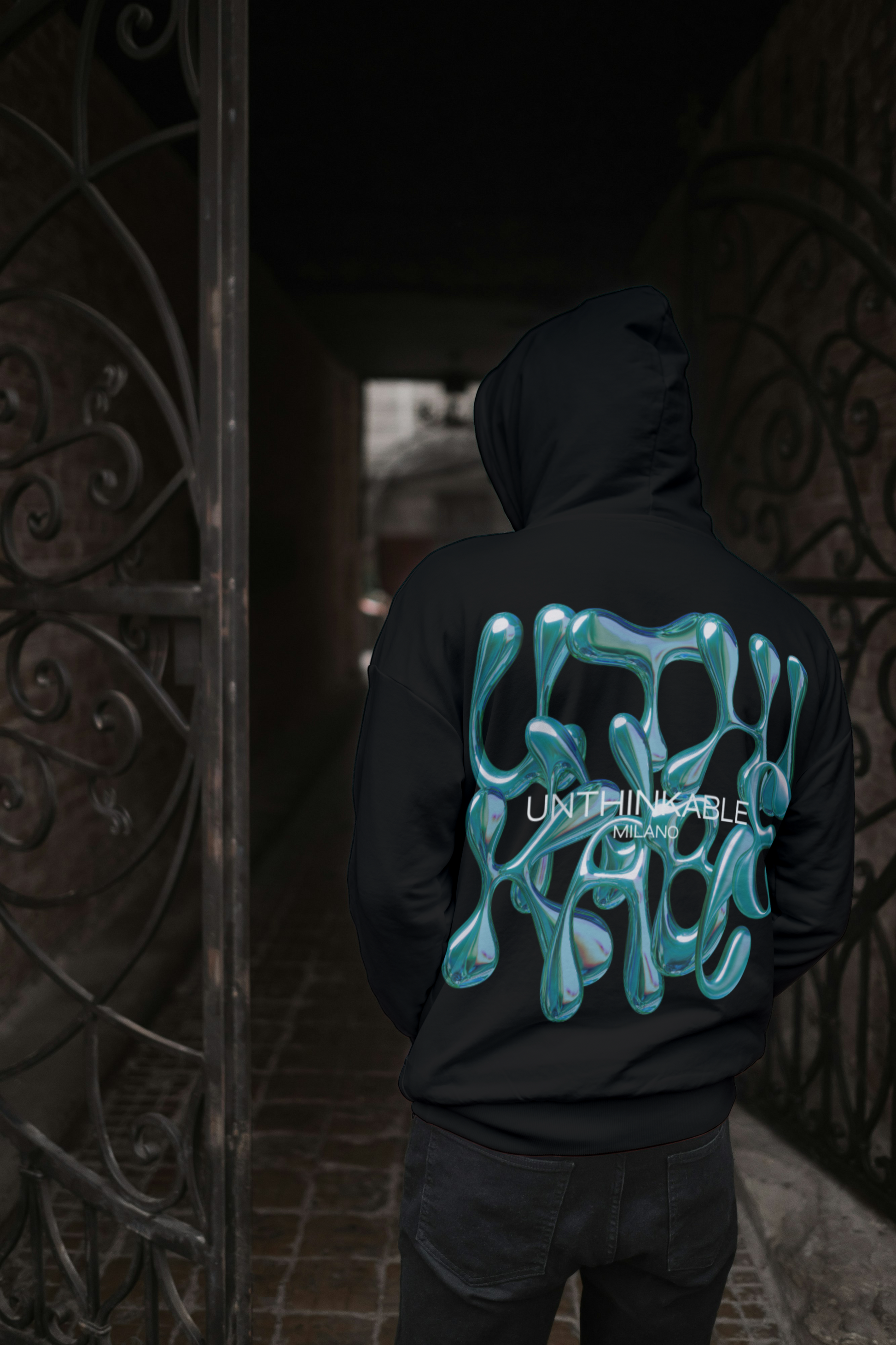 Felpa con Cappuccio Unthinkable Milano con logo retro verde